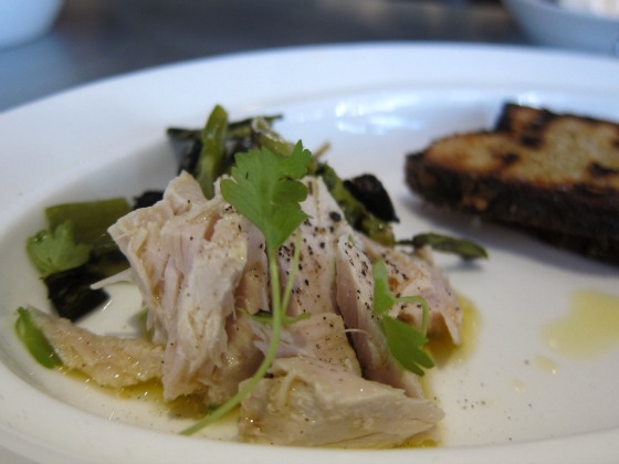The 83 1/2 menu has an appealing Stuzzicare section, with a special of any three snacks for only $13. Clearly this is the way to go, and I was rewarded with three-out-of-three winners: a fat, crispy pair of tomato risotto fritters, studded with oxtail and just the right hint of sweetness; a small pile of soft poached tuna drizzled in olive oil and paired with grilled ramps; and a mound of fluffy ricotta accompanied by a thick, pesto-ish sauce. Both of these last two came with oily toast which, when combined with the first-rate bread basket, red pepper spread and (more) olive oil, all makes for a snappy start to a meal.