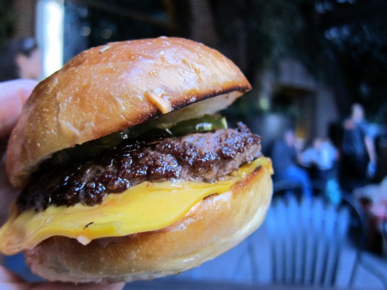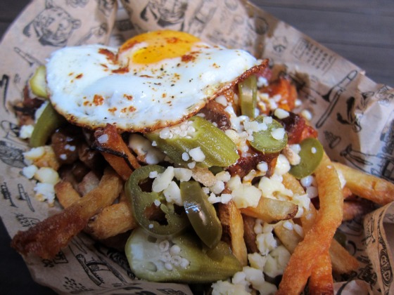 I did sample the goods at Hudson Common, however, which is the newish "modern-day beer hall and burger joint" adjacent to Tequila Park. I can definitely recommend at least one thing on the menu, the way-over-the-top Bloody Mary Fries. This is a hefty serving of thrice-cooked (in duck fat, supposedly) spuds topped with chewy chunks of bacon, a runny fried egg, crunchy pickled okra, jalapenos, and cheese curds. It's not a light dish, but man, it is good. Not as delicious, but definitely serviceable, is the Common Burger, which features fried onions in the patty, oddly unmelted velveeta cheese, a ketchup-mayo sauce, a few crisp pickles, all on a soft brioche-ish bun. Oh and there are now three en plein air foosball tables right outside the big leaded glass doors.